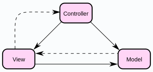 - Controller(控制器):是 View 层和 Model 层的纽带,它主要负责用户与应用的响应操作,当用户与页面产生交互的时候,Controller 中的事件触发器就开始工作了,通过调用 Model 层,来完成对 Model 的修改,然后 Model 层再去通知 View 层更新。